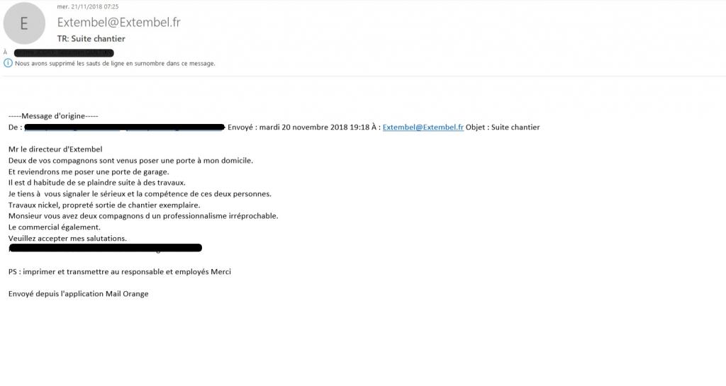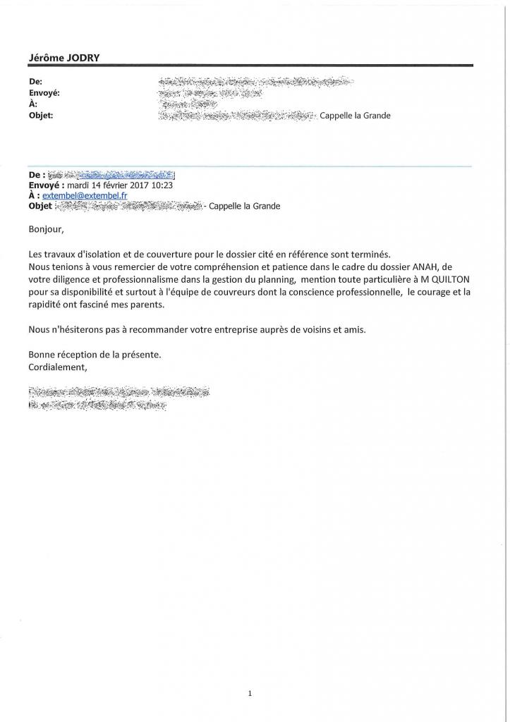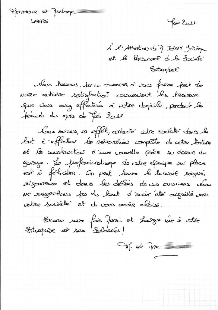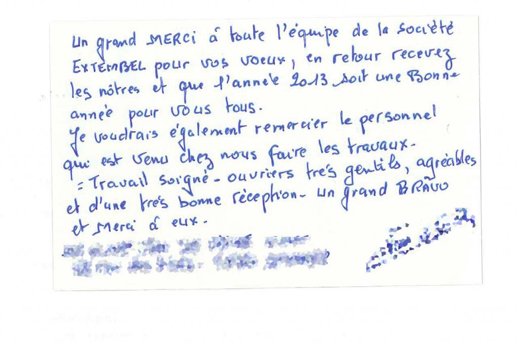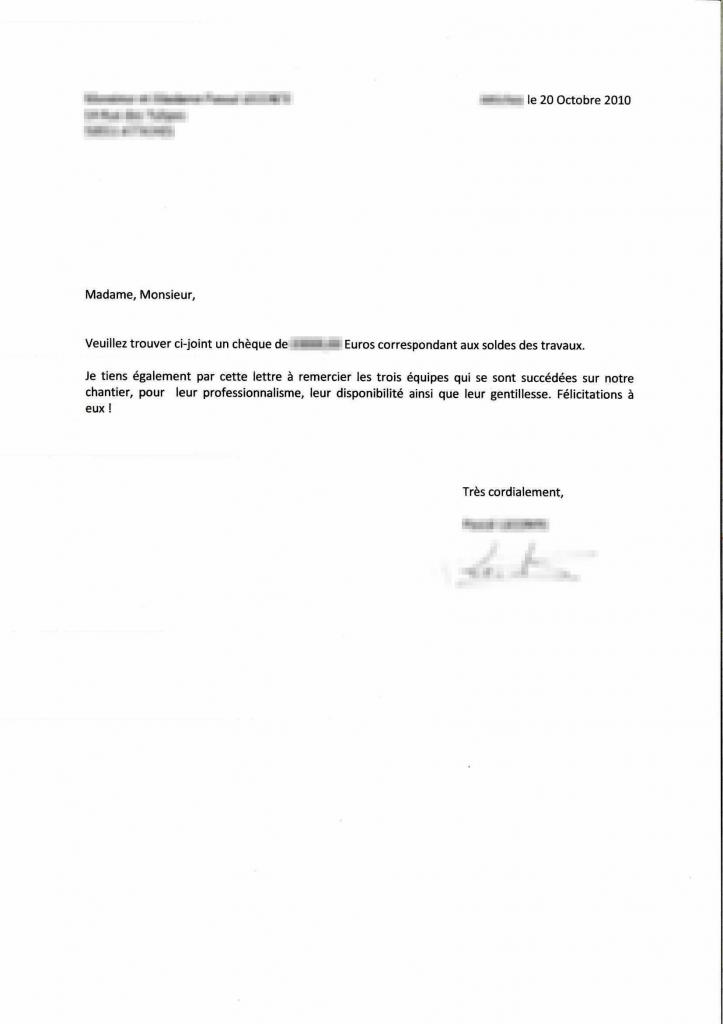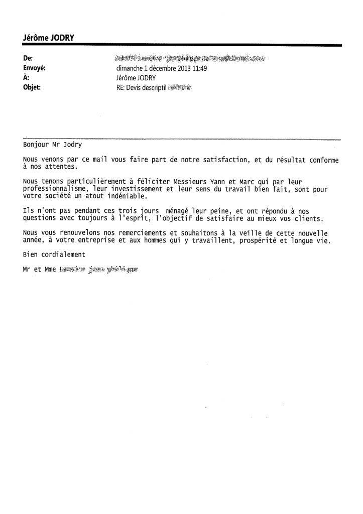 Je tiens à remercier les trois équipes qui se sont succédées sur notre chantier, pour leur professionnalisme, leur disponibilité ainsi que leur gentillesse. Félicitations à eux !